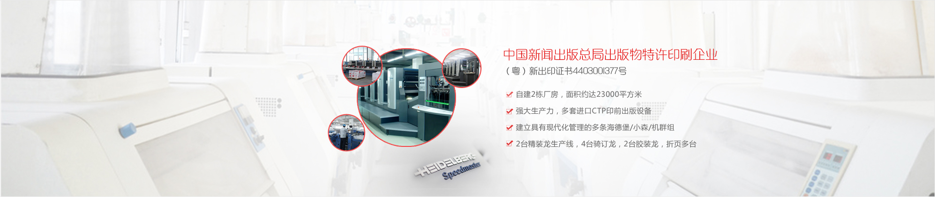 公司實(shí)力雄厚,設(shè)備先進(jìn)。 聚集了許多高等院校的尖端高級(jí)印刷專(zhuān)業(yè)人才,擁有國(guó)際頂尖的、全球最大的成套印刷設(shè)備— - 德國(guó)海德堡-對(duì)開(kāi)四色、五色、雙色、單色、四開(kāi)四色機(jī)等的主體印刷設(shè)備, 擁有高水準(zhǔn)后道加工系統(tǒng)—— 全電腦控制的斯塔爾折頁(yè)機(jī)、 STAHL 自動(dòng)折頁(yè)機(jī)、 全自動(dòng)鎖線機(jī)、 全自動(dòng)騎馬訂聯(lián)動(dòng)機(jī)、馬天尼膠裝龍、 程控切紙機(jī)、環(huán)保型過(guò)膠機(jī)、啤機(jī)等 精良裝備,整套印前印后設(shè)備。